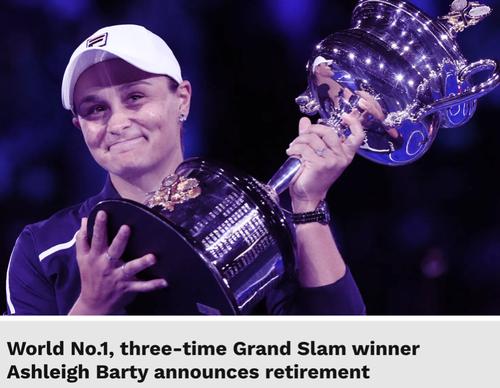 职业女子网球单打世界排名第一的澳洲名将艾什莉•巴蒂(Ashleigh Barty)今早在社交媒体宣布退役,这一非常规“打法”,引爆体坛。