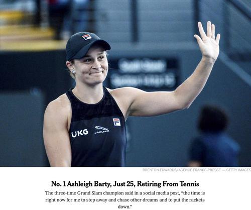 巴蒂退役引发全球体坛关注 图源:纽约时报体育版网页截图