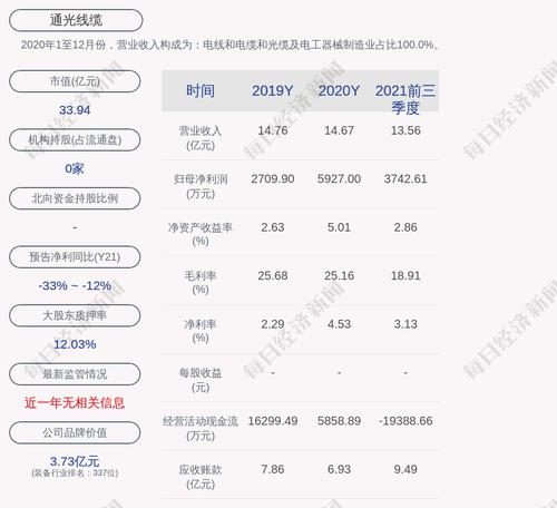2020年1至12月份,通光线缆的营业收入构成为:电线和电缆和光缆及电工器械制造业占比100.0%。