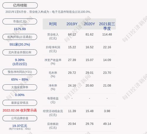 2021年1至6月份,亿纬锂能的营业收入构成为:电子元器件制造业占比100.0%。