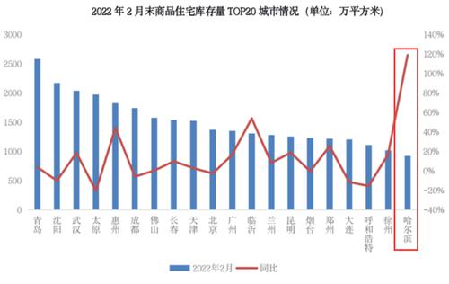 库存方面,克而瑞数据显示,截至今年2月末,哈尔滨库存同比涨幅高达120%,去化周期大于30个月,库存风险继续增加。