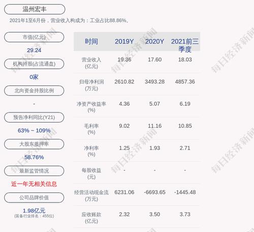 2021年1至6月份,温州宏丰的营业收入构成为:工业占比88.86%。