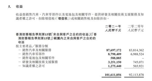 收益具体构成方面,销售汽车及相关服务实现营业收入876.97亿元,同比增长4.6%;销售汽车零部件营业收入87.98亿元,同比增长25.9%;销售电池包及相关零件营业收入5.89亿元,2020年无此项收入。