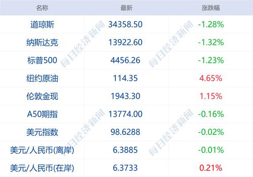 美股三大指数收盘均跌超1%。道指跌448.96点,跌幅1.29%,标普500指数跌1.23%,纳指跌1.32%。热门中概股普涨,爱奇艺涨约12%,哔哩哔哩、腾讯音乐涨超5%,拼多多涨近4%,阿里巴巴涨约2%。大型科技股涨跌不一,谷歌、脸书跌超1%,苹果涨0.8%,特斯拉涨0.5%。