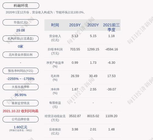 每经AI快讯,2022年3月24日,深交所向科融环境(SZ 300152,最新价:4.08元)发出关注函:针对“公告显示,根据中证天通会计师事务所对诸城宝源出具的带有持续经营存在重大不确定性段落的无保留意见审计报告,截至2021年12月31日,诸城宝源净资产为-7650.49万元,2021年分别实现营业收入、净利润810.95万元、约-1.64亿元,同比分别下降79.06%、3186.97%。公司称,2021年上半年,诸城宝源由于对垃圾焚烧炉升级改造,垃圾进厂量减少导致业绩下滑,2021年末公司决定对诸城宝源实施停产,进行技术升级改造,停产期间诸城宝源发生人员离职、设备损坏等情况,技改大修方案也未最终确定。同时除中国光大银行股份有限公司诸城支行的银行账户外,诸城宝源其他银行账户均被限定使用”等情况,深交所提出包括“请你公司结合近三年诸城宝源分季度垃圾日均处理量、处理价格、电费收入、期间费用等分析说明诸城宝源业绩下滑的开始时间;诸城宝源垃圾焚烧炉升级改造的具体原因、决策过程,并结合人员离职发生过程、设备损坏具体情况等,补充说明诸城宝源实际停产时间和停产具体原因”等要求。