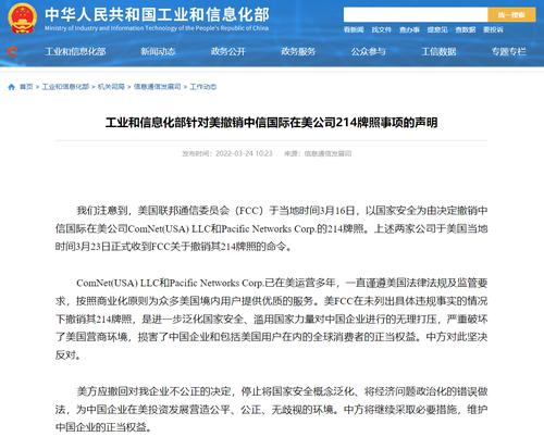 3丨工信部发布针对美撤销中信国际在美公司214牌照事项的声明
