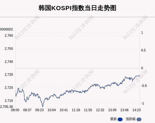 每经AI快讯:北京时间3月24日14:00,韩国KOSPI指数收盘下跌5.39点,跌幅为0.2%,报2729.66点。