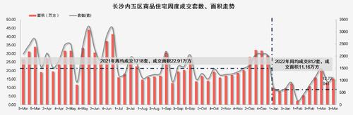 不过从长沙的新房成交量来看,相比去年仍处于低位。据湖南中原研究院数据,今年以来长沙内五区商品住宅周均成交812套,成交面积11.16万平方米。而2021年长沙内五区商品住宅周均成交1718套,成交面积22.91万平方米。对比来看,今年的周均成交量相比去年相差了一半还多。不过进入入3月份以来,长沙楼市成交明显回升,上周新房成交1126套,成交面积15.24万平方米,环比分别上涨20%。