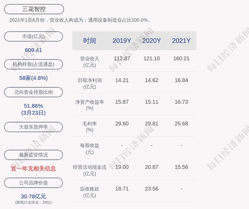 2021年1至6月份,三花智控的营业收入构成为:通用设备制造业占比100.0%。