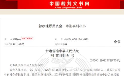 刑事判决书显示,祁某于2019年10月因涉嫌挪用资金罪被榆中县公安局依法刑事拘留,同年11月8日经榆中县人民检察院批准被逮捕。