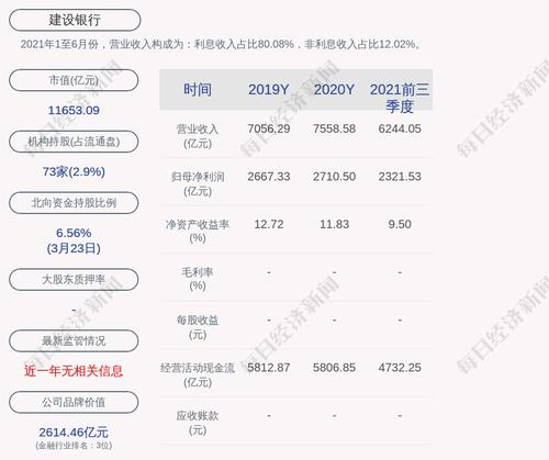 2021年1至6月份,建设银行的营业收入构成为:利息收入占比80.08%,非利息收入占比12.02%。