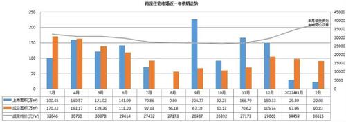 据同策南京咨询研究中心统计,今年1-2月,南京一手住宅供应量连创新低,分别仅为29.4万平方米和22.08万平方米,但成交量均超过90万平方米,远超2021年8月至11月的月均成交量。