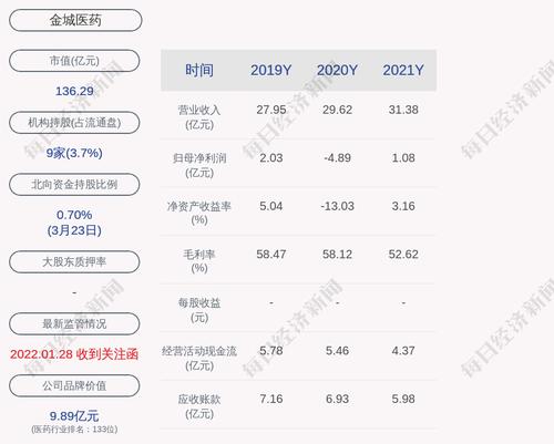 1. 金城医药近30日内北向资金持股量减少42.58万股,占流通股比例减少0.11%;