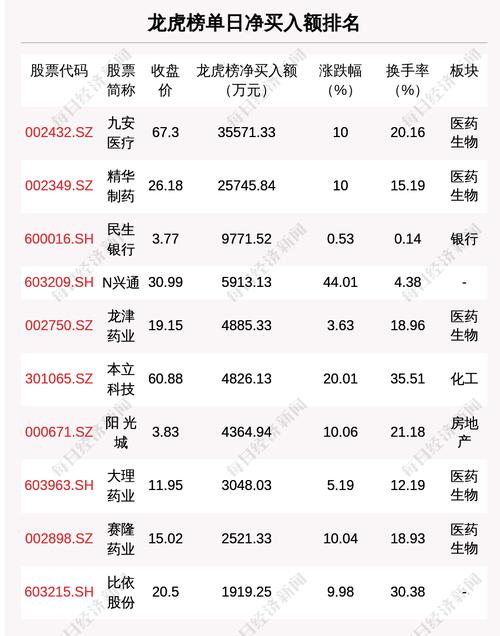 2丨整点投资|龙虎榜:九安医疗单日净买入额最多,涉及机构专用席位的个股有23只