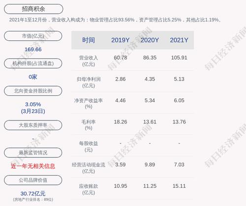 2021年1至12月份,招商积余的营业收入构成为:物业管理占比93.56%,资产管理占比5.25%,其他占比1.19%。
