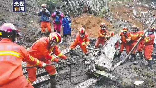 3月24日下午,“3·21”东航MU5735航空器飞行事故国家应急处置指挥部举行第四场新闻发布会。民航局航安办主任朱涛在发布会上表示,现在基本确定了事故的主要撞击点,飞机大部分残骸集中在主要撞击点周围半径30米左右的核心区域。深度从地表向下延伸最深处大约20米。发布会上,民航局回应了失事客机机头为何垂直砸向地面:由于航空器事故调查是专业性和系统性极强的技术工作,需要调查人员与技术专家以及相关单位协同配合,才能抽丝剥茧,理清事实。图为3月24日,“3·21”东航飞行事故搜救核心区救援人员拖出飞机大部件(央视新闻视频截图) (央视新闻)