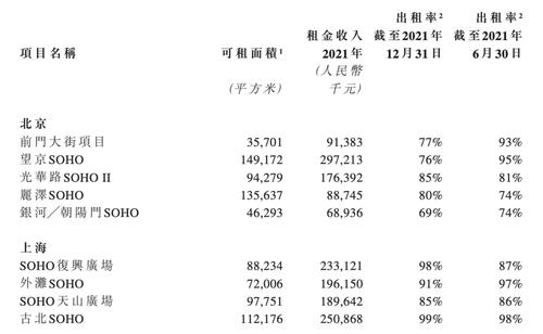 另外,2021年,SOHO中国实现租金收入约17.42亿元,同比增长约13%。全年 无物业销售收入。租赁业务毛利率余额为80%,2020年约为76%,投资物业平均出租率约为85%。