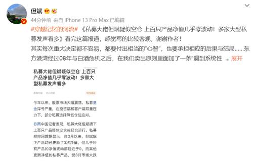 回应称,《私募大佬但斌疑似空仓 上百只产品净值几乎零波动!多家大型私募发声看多》看完这篇报道,感觉写的比较客观,谢谢作者!