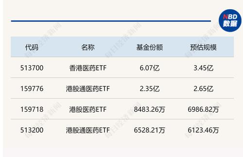 目前两市有4只ETF上市跟踪中证港股通医药卫生综合指数,规模较大的是香港医药ETF,预估规模为3.45亿元。