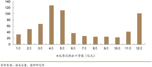 2021年每月抗原试剂出口货值 去年我国抗原检测相关产品出口额较大 图片来源:德邦证券研报