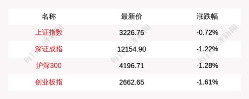 截至北京时间13:30,上证指数报3226.75点,跌0.72%,深证成指报12154.90点,跌1.22%,沪深300报4196.71点,跌1.28%,创业板指报2662.65点,跌1.61%