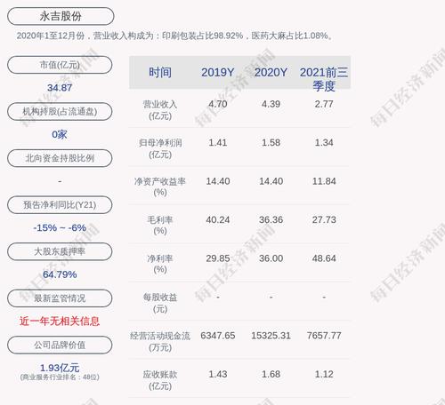 2020年1至12月份,永吉股份的营业收入构成为:印刷包装占比98.92%,医药大麻占比1.08%。