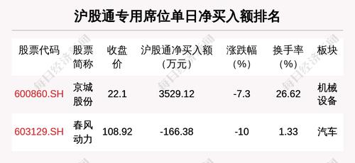 在龙虎榜中,涉及沪股通专用席位的个股有2只,京城股份的沪股通专用席位净买入额最大,净买入3529.12万元。