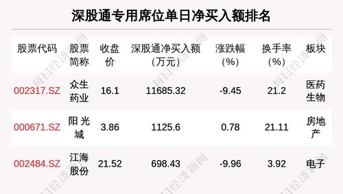 在龙虎榜中,涉及深股通专用席位的个股有3只,众生药业的深股通专用席位净买入额最大,净买入1.17亿元。