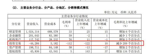 划分业务板块看,投资交易集群业务变动最为明显,2021年亏损4亿元,比上年同期减少122%。
