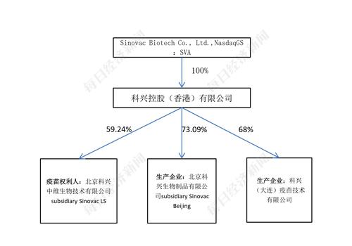 从股权结构上看,科兴生物持有科兴控股(香港)有限公司(以下简称科兴控股)100%股权,科兴控股则持有北京科兴73.09%股权,后者剩余的26.91%股权则属于厦门未名。