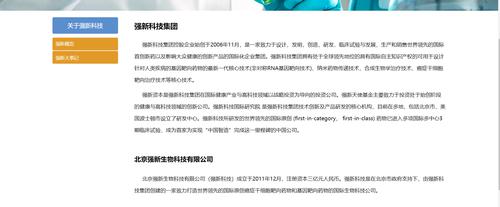 据强新科技集团官网介绍,北京强新成立于2011年12月,注册资本3亿元,是由强新科技集团创建的一家致力于打造世界领先的国际原创癌症干细胞靶向药物和基因靶向药物的国际生物科技公司。