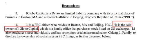 SEC 2020年5月的一份文件显示,李嘉强是1Globe的唯一所有者。SEC认为,李嘉强和1Globe没有披露他们对科兴生物全部的持股(包括关联方持有的大量股份),以及他们参与了由其他投资者主导的计划,从而剥夺了科兴生物现有和潜在股东作出充分知情的投资决策所必需的信息。