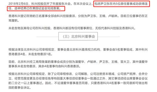 针对同一场股东大会,北京科兴方面的说法则是:“在本次会议上,包括尹卫东在内5位原任董事成功获得连任,选举结果已在美国证监会完成备案。”