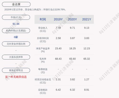 2020年1至12月份,金达莱的营业收入构成为:环保行业占比99.78%。