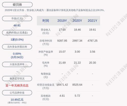 2020年1至12月份,硕贝德的营业收入构成为:通信设备和计算机及其他电子设备制造业占比100.0%。