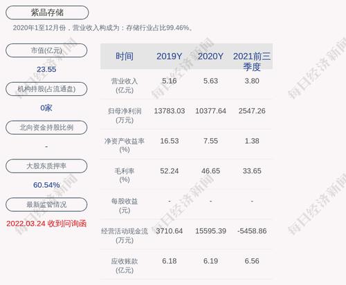 每经AI快讯,紫晶存储(SH 688086,收盘价:12.37元)3月25日晚间发布公告称,紫晖投资质押约2204万股。截至本公告日,紫晖投资累计质押股数约为2800万股,占其所持股份比例为100%。紫辰投资累计质押股数约为2830万股,占其所持股份比例为100%。