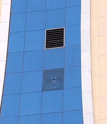 △无人机残骸坠地导致受损的建筑物 来源:央视新闻客户端