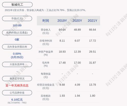 2021年1至12月份,氯碱化工的营业收入构成为:工业占比78.79%,贸易占比20.37%。