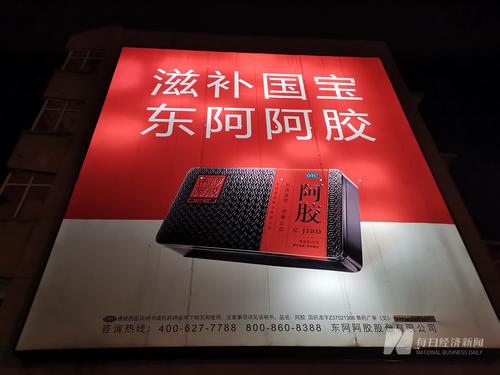 阿胶小区住宅楼外墙上的东阿阿胶广告板