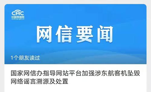 此外,腾讯、新浪微博、字节跳动、快手、百度、哔哩哔哩、小红书、知乎等网站平台,对借东航客机坠毁事故造谣传谣、散布阴谋论、调侃灾难等违法违规信息和账号从快从严处置。