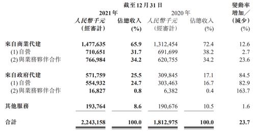 年报显示,2021年绿城管理实现营收22.432亿元,同比增长23.7%;归母净利润5.65亿元,同比增长31.9%;新拓代建项目的合约总建筑面积达2280万平方米,同比增长约21.9%;新拓代建项目代建费预估71.1亿元,同比增长约22.3%。