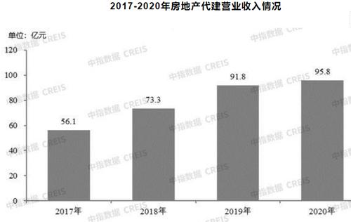 不过,据中指研究院数据,虽然2017-2020年房地产代建的营业收入快速提升,复合增长率分别达到19.5%,但2020年代建业务的营业收入为95.8亿元,尚不足百亿元,仍有较大发展空间。