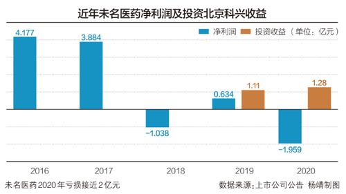 2019年、2020年,未名医药分别实现归属于上市公司股东的净利润约0.63亿元和-1.96亿元。同期,未名医药对北京科兴确认的投资收益则分别为1.28亿元和1.11亿元。