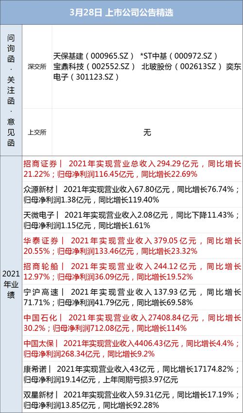 NO.2 贵州茅台:3月27日,据熟悉茅台的相关人士透露,茅台官方新电商平台隶属于股份公司,将计划投放四种新产品:53度500ml“贵州茅台酒(壬寅虎年生肖酒)”;53度500ml“茅台1935”;53度375ml“贵州茅台酒(壬寅虎年生肖酒)”;53度500ml“贵州茅台酒(珍品)”。但普通飞天茅台不在销售名单之列。据悉,此番不直接投放500ml飞天茅台酒主要是为推进相关平台顺利上线运行,避免市场对飞天茅台酒的过度聚焦和炒作。(上证报)