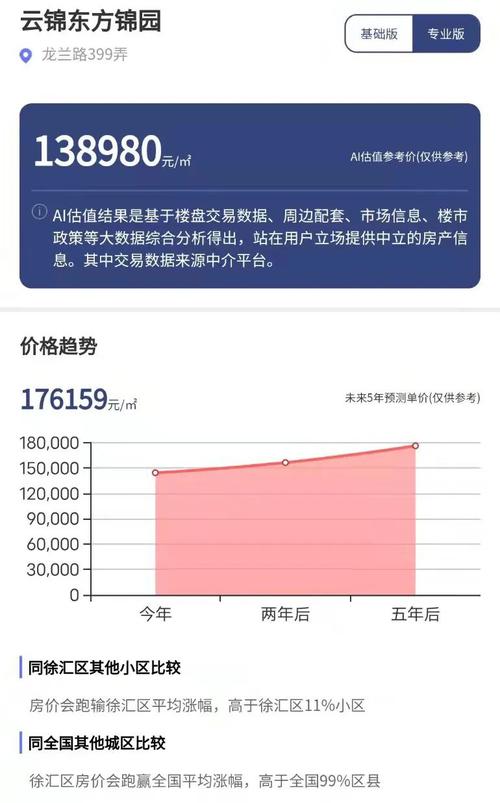 每经品房小程序综合测算显示,未来五年云锦东方的房价会跑输徐汇区的平均涨幅,但高于徐汇区11%的小区。