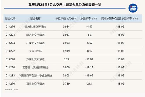 《每日经济新闻》记者注意到,上周沪深股市虽然小幅反弹,但是北交所个股的表现平淡,因此8只北交所主题基金的表现也偏弱,并且自首次成立以来出现了单元净值进入“7字头”的基金。