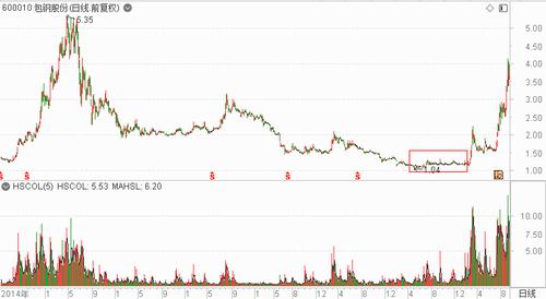 举个以前的例子,在2021年初的时候,牛眼君就错过了包钢股份,当时股价才1元,处于历史底部,由于太过谨慎,所以错过了,现在想来挺后悔的,股价从1元最高涨到了4元。