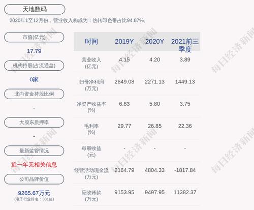 2020年1至12月份,天地数码的营业收入构成为:热转印色带占比94.87%。