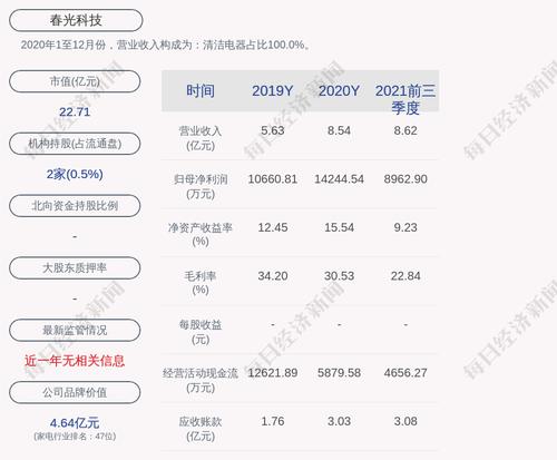 2020年1至12月份,春光科技的营业收入构成为:清洁电器占比100.0%。