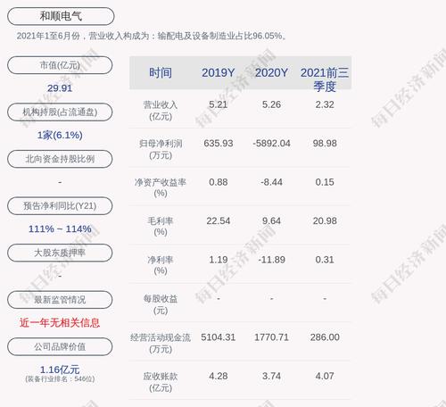 2021年1至6月份,和顺电气的营业收入构成为:输配电及设备制造业占比96.05%。